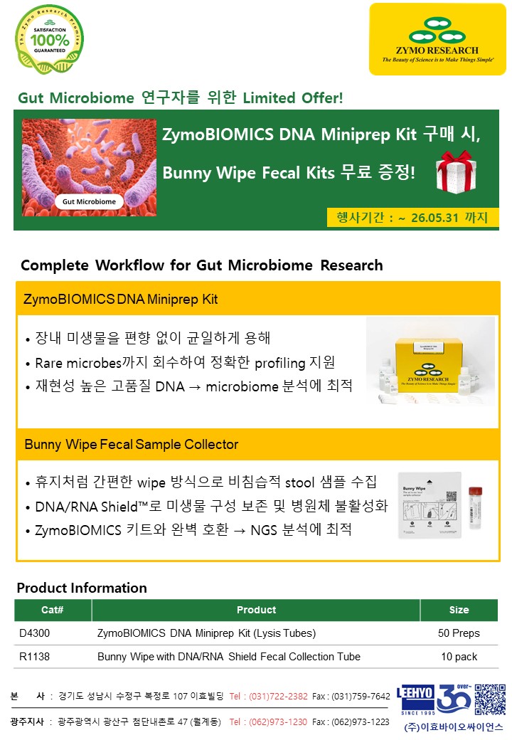[Zymo Research] Gut Microbiome 연구자를 위한 특별 행사!